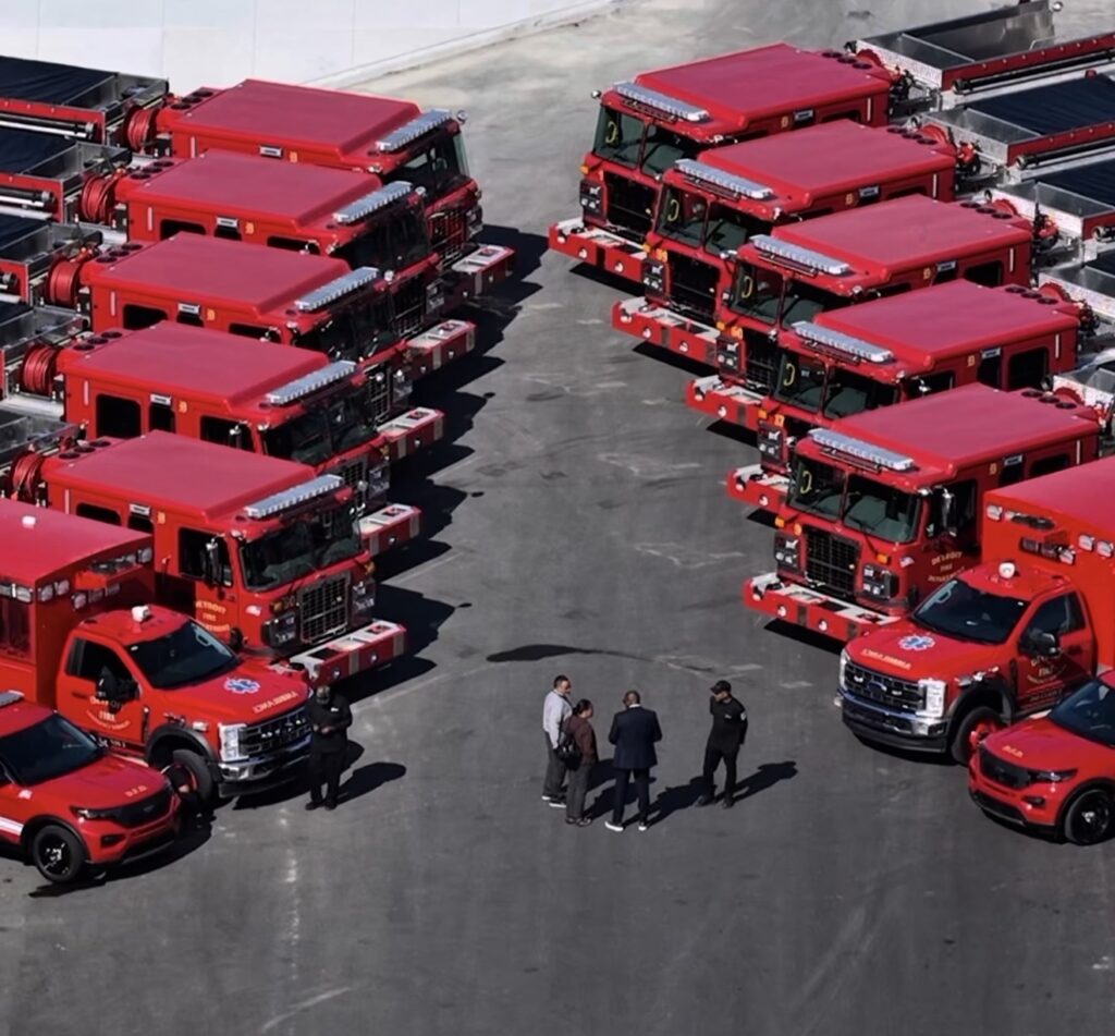 The $10.7 million investment adds 10 fire engines, 13 ambulances, three Battalion Chief vehicles, and three EMS Supervisor SUVs to the fleet.