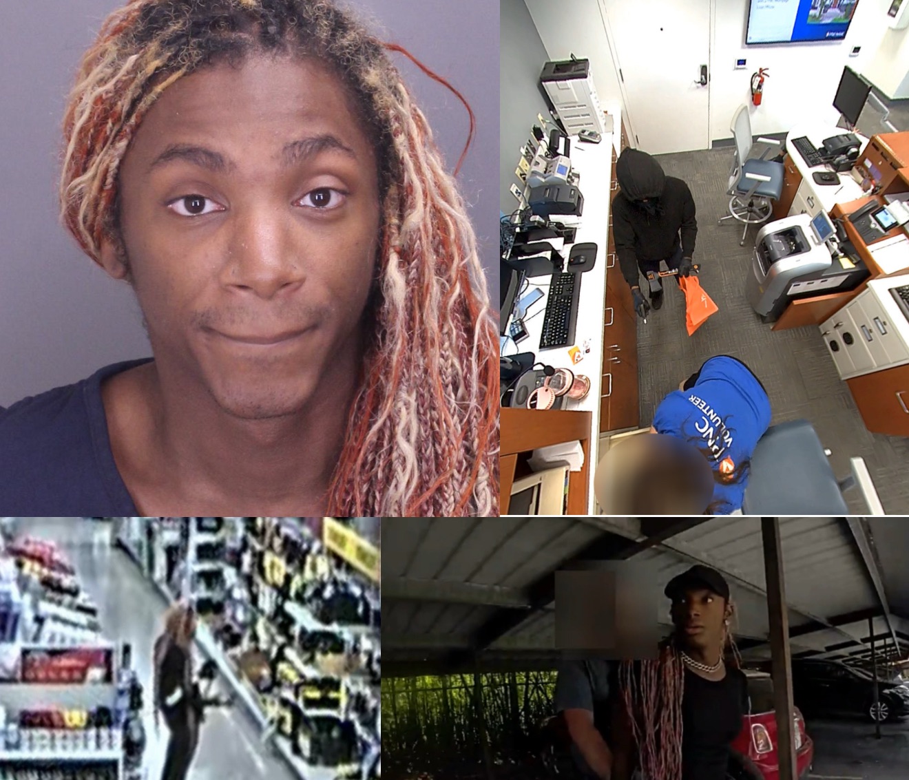 The suspect — Blake Herring, who police say presents as a female— entered the bank armed with a hatchet and a handgun. Investigators say she demanded money and then struck a bank employee in the head with the hatchet before fleeing with an undisclosed amount of money.